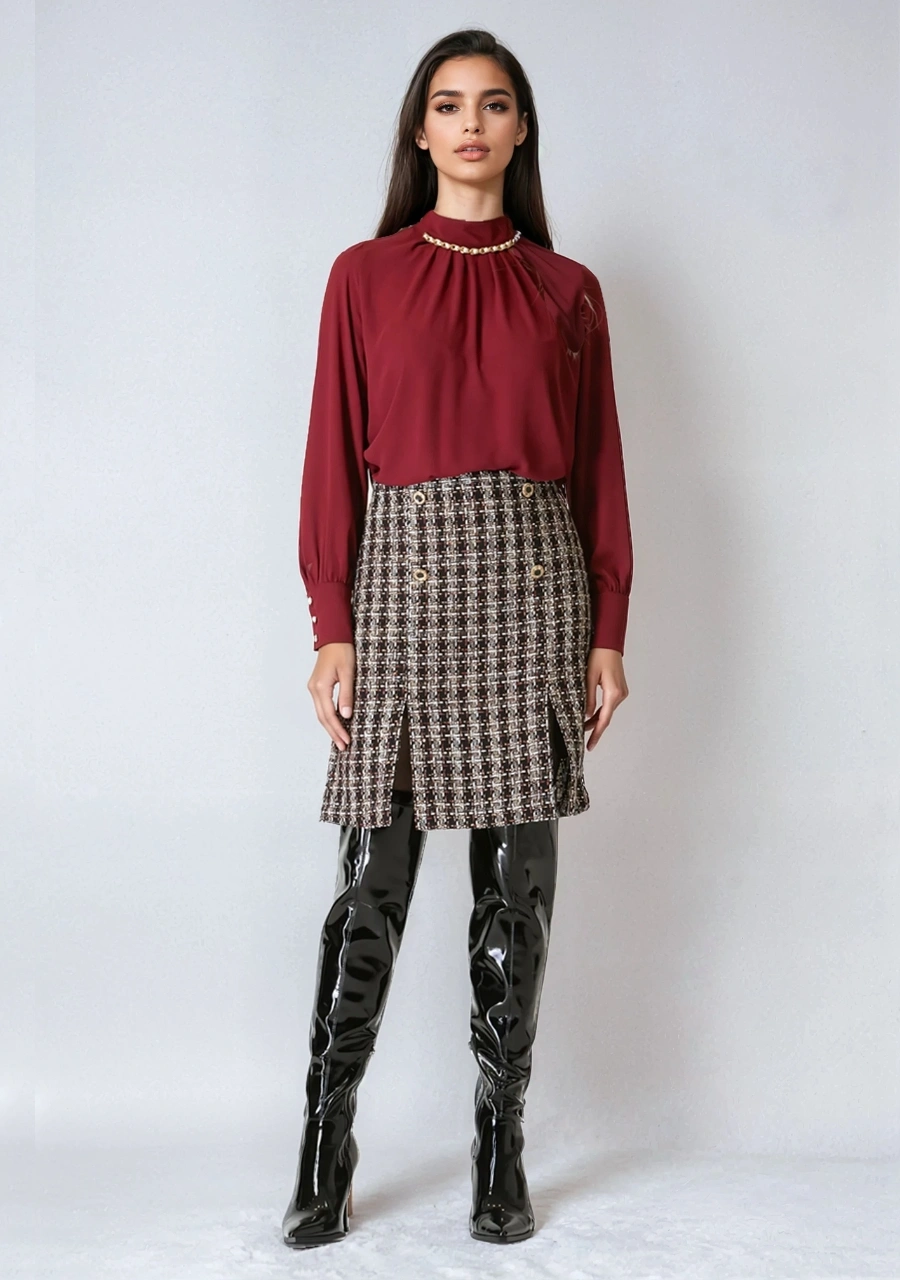 Φούστα Εμπριμέ Σατέν με Τόκα