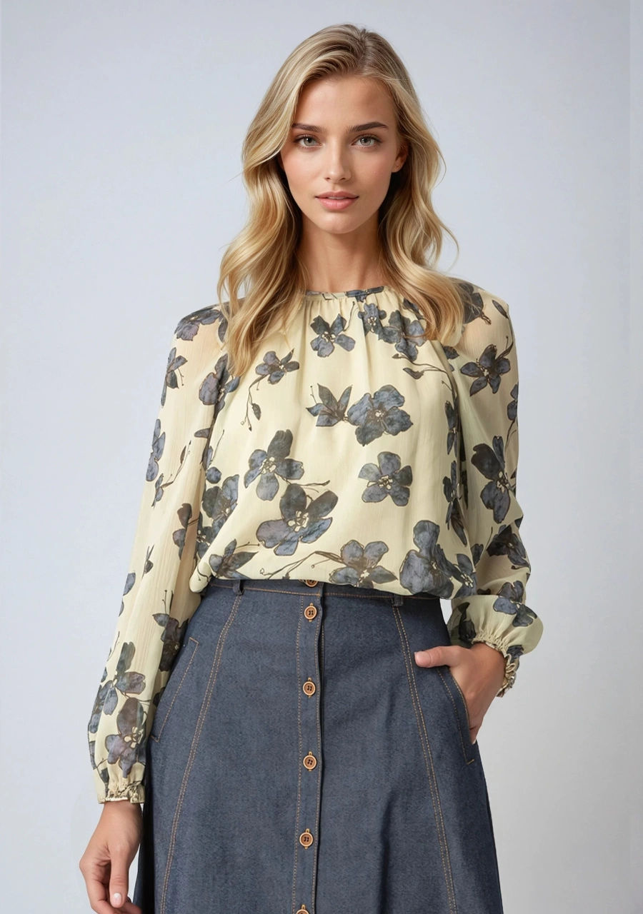 Μπλούζα Εμπριμέ Μουσελίνα