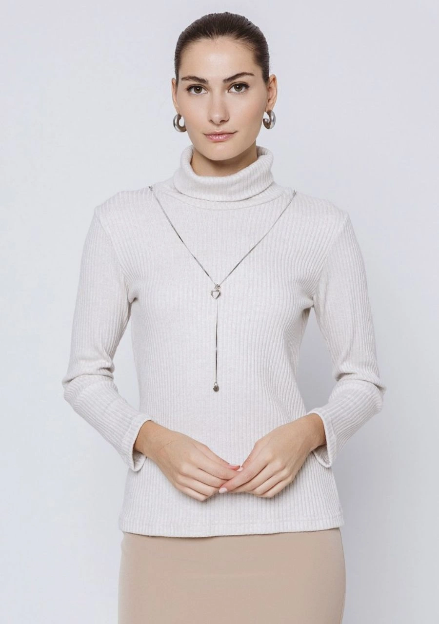 Μπλούζα πλεχτή ζιβάγκο Rib με αποσπόμενο κολιέ στο λαιμό. Σε ύφασμα ελαστικό. Ελληνικής παραγωγής.