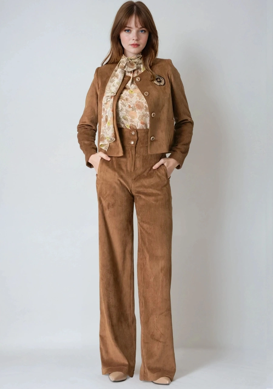 Παντελόνι κοτλέ σε άνετη γραμμή. Γίνεται σετ με το σακάκι του. Ελληνικής παραγωγής.