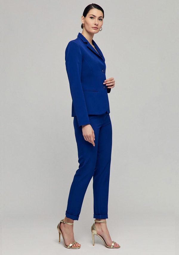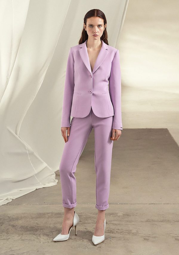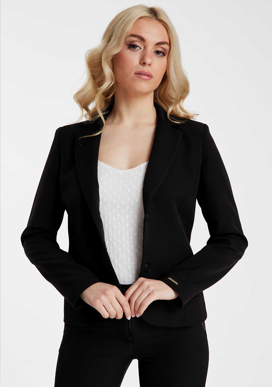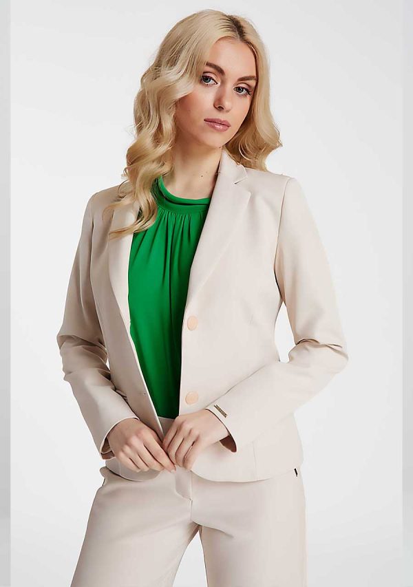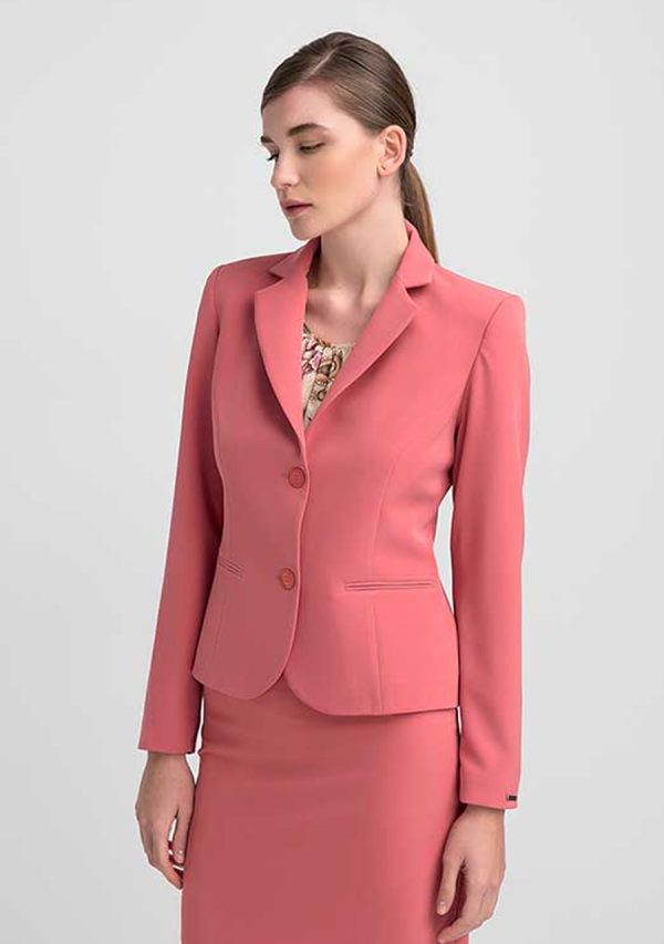 Σακάκι Muffin μεσάτο σε ύφασμα κρεπ διαγωνάλ ελαστικό. Διαθέτει βάτες και φόδρα εσωτερικά. Γίνεται σετ με τα αντίστοιχα παντελόνια και φούστες. Ελληνικής παραγωγής.